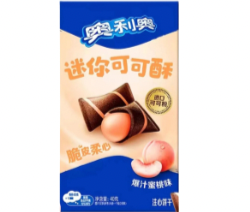 Ingredients; Wheat Flour (66%), Solid Corn Syrup, Edible Vegetable Oil, Sugar, Starch, Cocoa Powder, Food Additives (Thickening Agent (E1420), Soybean Phospholipid, Sweetener (E968), Acidity Regulator (Dl-Malic Acid), Colouring Agent (E120)), Fructose Syrup, Peach Powder, Salt, Edible Essence.